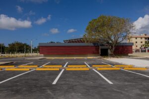 También dispone de dos áreas de descarga y parqueos con capacidad para 142 vehículos y 73 motocicletas, facilitando la logística y el acceso de compradores y suplidores.