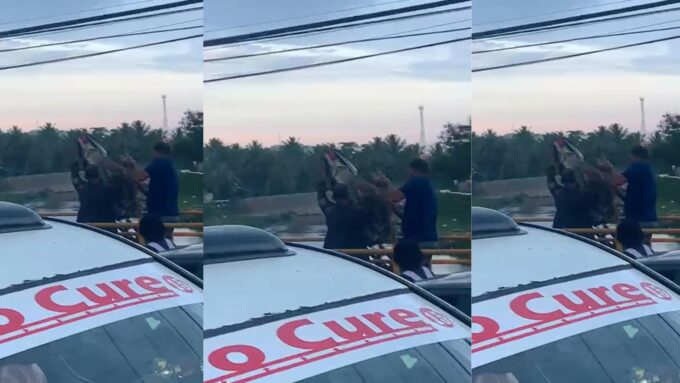 En el camión se encontraban varias personas, quienes optaron por permanecer sobre la carga para evitar ser arrastradas por la corriente, en una escena que generó preocupación entre testigos.