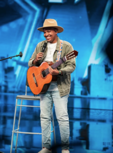 “Una guitarra, una canción y todo mi corazón”, agradeciendo la oportunidad y demostrando que los obstáculos solo lo motivaron a llevar su música al nivel global.