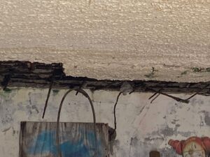 Las fotografías evidencian fisuras diagonales en columnas —indicativo de daño estructural—, varillas expuestas que ya muestran corrosión avanzada, y un concreto que ha perdido adherencia, dejando a la vista materiales debilitados. Estas condiciones, de no ser atendidas con urgencia, podrían derivar en un colapso parcial o total, especialmente en caso de lluvias intensas, vibraciones o sobrecarga por ocupación.