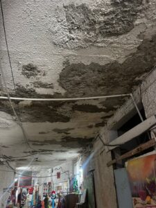 En su interior, decenas de gift shops y pequeños locales comerciales operan bajo techos deteriorados y vigas agrietadas, mientras los visitantes transitan por pasillos donde el concreto se desprende visiblemente. Lo más preocupante es que, según los comerciantes, muchos turistas —incluyendo familias y menores de edad— ingresan a diario sin que exista un control de seguridad ni inspecciones visibles por parte de las autoridades competentes.