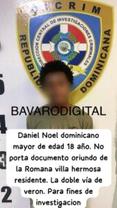 El informe detalla que el joven no portaba documentos de identidad al momento de su detención y alegó que nunca ha tramitado su cédula. Fue apresado en flagrante delito mientras se desplazaba con el vehículo en la playa BibiJagua, en Bávaro, Punta Cana.