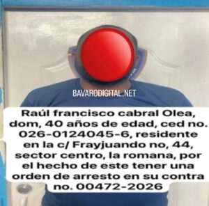 Las indagatorias y labores de inteligencia condujeron a la localización y arresto de RAÚL FRANCISCO CABRAL OLEA, de 40 años de edad, quien figuraba con orden de arresto activa. Conforme al informe, el detenido admitió de manera voluntaria su vinculación con el hecho, lo que facilitó la recuperación de 80 metros de porcelanato de baño y 200 metros de porcelanato de piso.