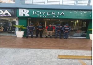 El informe también consigna verificaciones puntuales en establecimientos específicos, incluyendo Supermercado Jumbo, Vimenca / Western Union y Joyería R/R Jewelry, donde igualmente se realizaron acciones de coordinación preventiva y fortalecimiento de la seguridad. En las imágenes anexas al reporte se observa presencia policial activa en estos locales (ver página 2).