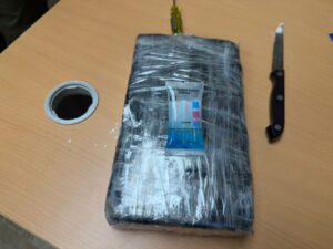 Durante la revisión también se ocuparon un teléfono celular iPhone XR de color blanco y un dispositivo GPS, equipos que serán sometidos a análisis para obtener información que ayude a identificar a los responsables del intento de envío de la droga.