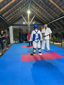 La Teniente Coronel Melanie Nagel presenció tanto las pruebas técnicas como los combates de alumnos de diferentes edades, resaltando el alto nivel de disciplina, respeto, concentración y control emocional que caracteriza al Kyokushin Karate.