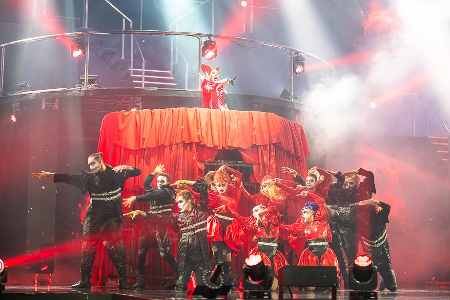 El espectáculo “Abracadabra” contó con 40 bailarines y una imponente jaula metálica de 11 pies de ancho por 8 de alto, además de un elaborado juego de luces que dio vida al montaje.
