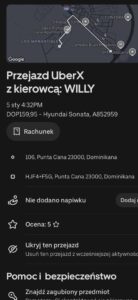 El trayecto quedó registrado desde 106, Punta Cana 23000, hasta HJF4+F5G, Punta Cana 23000, según consta en la información del viaje proporcionada por la plataforma. Dentro de la mochila se encontraba dinero correspondiente a su jornada laboral, además de otros objetos personales.