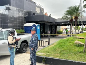 En la zona cero, ubicada en la avenida Independencia, técnicos nacionales y extranjeros trabajan bajo estrictas medidas de seguridad, mientras agentes de la Policía Nacional mantienen el área completamente resguardada.