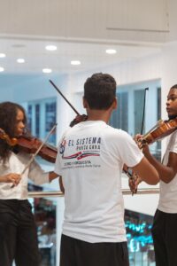 Entre las actividades, el miércoles se realizó una presentación especial de los maestros de El Sistema Punta Cana en Brönch DO, el café cultural de BlueMall Punta Cana, de 4:30 p.m. a 7:30 p.m. Durante esta velada, los asistentes disfrutaron de un ambiente íntimo y festivo, destacando la participación del profesor de violín Omar Suniaga, quien ofreció una impresionante interpretación de violín eléctrico, en homenaje a la creatividad y dedicación docente que caracteriza al programa.