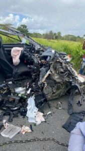 Higüey, La Altagracia. — Una tragedia sacudió la mañana de este domingo a la comunidad de Jobo Dulce, en Higüey, luego de que una yipeta Honda CR-V color blanco, placa G466634, se deslizara violentamente e impactara contra un poste del tendido eléctrico, dejando un saldo preliminar de cuatro personas fallecidas y un herido.